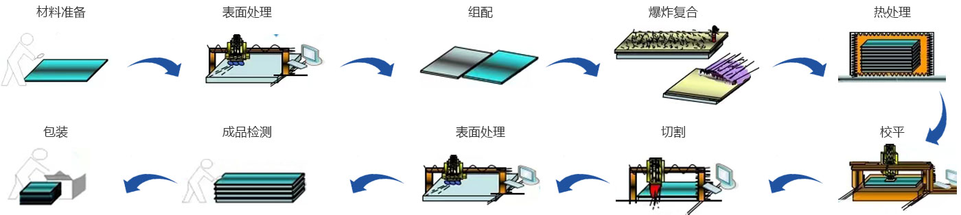 不銹鋼復合板爆炸復合的生產方法。 爆炸復合是將不銹鋼板重疊置于碳鋼基板上,不銹鋼板和碳鋼基板之間用墊子間隔出一定的距離,在不銹鋼板上面平鋪炸藥,炸藥爆炸的能量使不銹鋼板高速撞擊碳鋼基板,產生高溫高壓使兩種材料的界面實現固相結合?! 〔讳P鋼復合板是以碳鋼基層與不銹鋼覆層結合而成的復合板鋼板。它的主要特點是碳鋼和不銹鋼形成牢固的冶金結合,可以進行熱壓、冷彎、切割、焊接等各種加工,有良好的工藝性能。不銹鋼復合板的基層材料可以使用Q235B、Q245R、Q345B,Q345R等各種普通碳素鋼和專用鋼。覆層材料可以使用304、316L、321和雙相不銹鋼等各種牌號的不銹鋼。材質和厚度可以自由組合,滿足不同用戶的需要。不銹鋼復合板已經廣泛應用于石油、化工、鹽業、水利電力等行業。不銹鋼復合板作為一種資源節約型的產品,減少貴重金屬的消耗,大幅度降低工程造價。實現低成本和高性能的***結合,有良好的社會效益。 不銹鋼復合板是怎樣生產的呢?不銹鋼復合板工業化生產主要有兩種方法,爆炸復合和熱軋復合。爆炸復合板的生產工藝是將不銹鋼板重疊置于碳鋼基板上,不銹鋼板和碳鋼基板之間用墊子間隔出一定的距離。不銹鋼板上面平鋪炸藥,炸藥爆炸的能量,使不銹鋼板高速撞擊碳鋼基板,產生高溫高壓使兩種材料的界面實現固相焊接。理想狀態下,界面的每平方毫米的剪切強度可以達到400MPa以上。熱軋復合板工藝是以碳鋼基板和不銹鋼板處于物理純凈狀態,在高度真空條件下進行軋制而成。在軋制過程中兩種金屬擴散實現完全的冶金結合。但是不能解決10mm以上金屬的復合,這種焊接只具有壓軋焊接的特點,不像爆炸焊接融合了壓力焊、熔化焊、和擴散焊的特點,爆炸焊為不同基體金屬的結合提供了更多和更好的條件。正因為如此,同種和異種金屬都可以爆炸焊接以上兩種復合板制造方法都執行GB/T-8165-1977國家標準。該標準非等效采用日本JISG3601-1990標準,主要技術指標相同或高于日本標準。 那么爆炸復合工藝特點如何呢?爆炸復合的特點:一、由于爆炸復合是冷加工,因此它可以產生100多種金屬復合板,如鈦、銅、鋁等等。二、爆炸復合可以生產不銹鋼復合板總厚度可以達到幾百毫米厚的不銹鋼復合板,不銹鋼復合板兼具各種碳素鋼和不銹鋼的特點,以其優異的性能價格比為用戶歡迎,有廣闊的市場前景。但有趣的是,從五十年代開始,經過半個多世紀風風雨雨的開發過程,仍然有很多人不知道它。更多的人未使用過它。應該說不銹鋼復合板的市場遠未進入成熟期,仍在開發過程中。科技工作者為建設資源節約型社會的探索和努力永遠不會停止。洛陽京久金屬復合材料有限公司致力于各種金屬爆炸復合材料的研究與開發生產,永不停歇的努力滿足社會發展對金屬復合材料的需求。